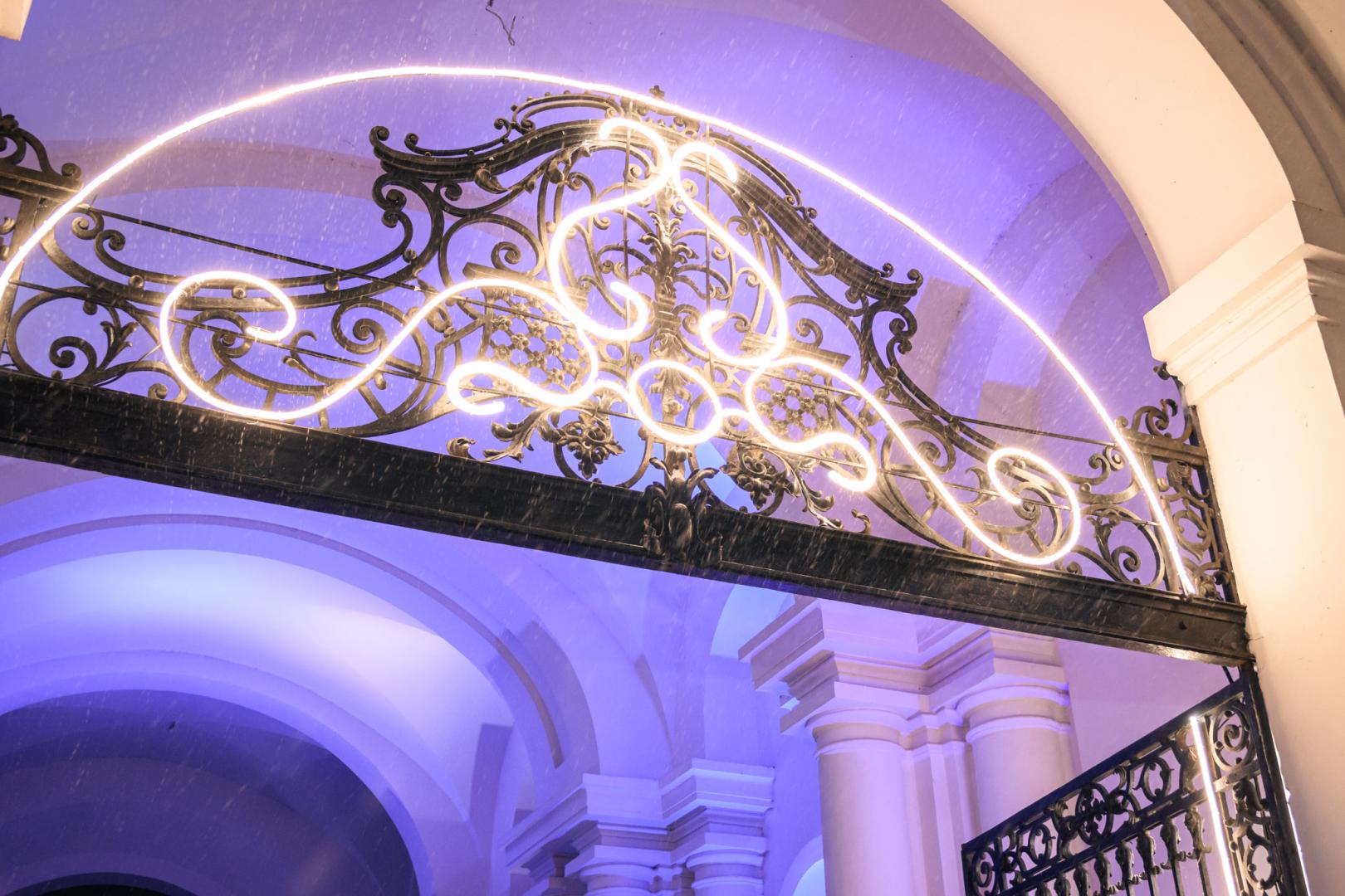 Jelgavas pils Ziemassvētku balle tika atklāta Latvijas Biozinātņu un tehnoloģiju universitātes (LBTU) Aulā ar Oginska polonēzi, piedaloties tautas deju ansambļa "Kalve" dejotājiem, bet viesus uzrunāja rektore Irina Arhipova. Par muzikālo noskaņu rūpējās "Jelgavas BigBends" Raita Ašmaņa vadībā ar solistiem Aiju Vītoliņu un Daumantu Kalniņu, muzikālās apvienības "Vintāža", "Honey Blue" un "A`pie mums Jelgavā". Tāpat uzstājās operas solisti Brigita Čirkše-Reisone un Rihards Mačanovskis, dziedātāja Rūta Dūduma-Ķirse un pianists Jānis Ķirsis, koris "Liepa", "Elemental Cello", arfiste Elizabete Gulbe un "Dūšas deju skola". Sudraba zālē viesus uzņēma skaņu meistars Jānis Irbe. Visa vakara garumā apmeklētāji baudīja radošās darbnīcas, LBTU Studentu teātra un citas aktivitātes.